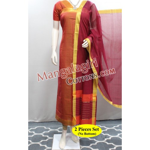 Mangalagiri Handloom Pure Cotton Dress Material with Gold Zari Border. Unstitched 2 Pieces Set.