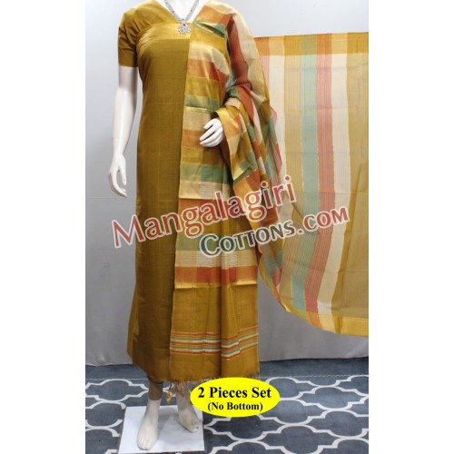Mangalagiri Handloom Pure Cotton Dress Material with Gold Zari Border. Unstitched 2 Pieces Set.