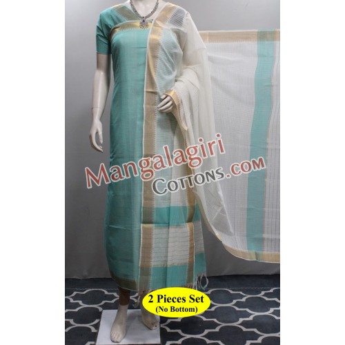 Mangalagiri Handloom Pure Cotton Dress Material with Gold Zari Border. Unstitched 3 Pieces Set.