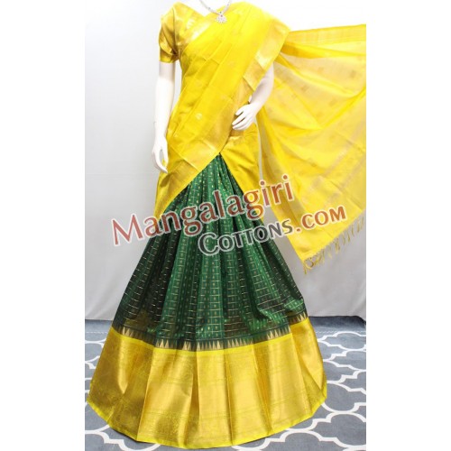 Mangalagiri Pure Handloom Pure Pattu Langavoni Set. Set comes with unstitched Blouse piece.