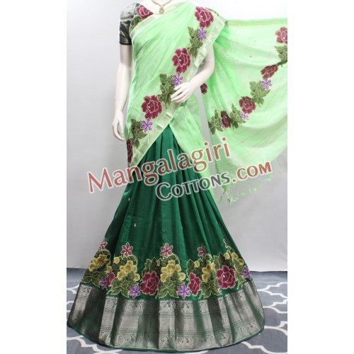 Mangalagiri Pure Handloom Semipattu Applique Work Langavoni Set. Set comes with unstitched Blouse piece.