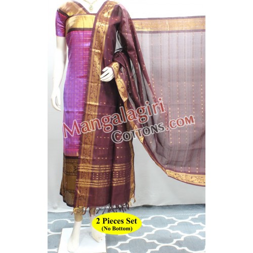 Mangalagiri Handloom Pure Pattu Dress Material with Gold Zari Border. Unstitched 2 Pieces Set.