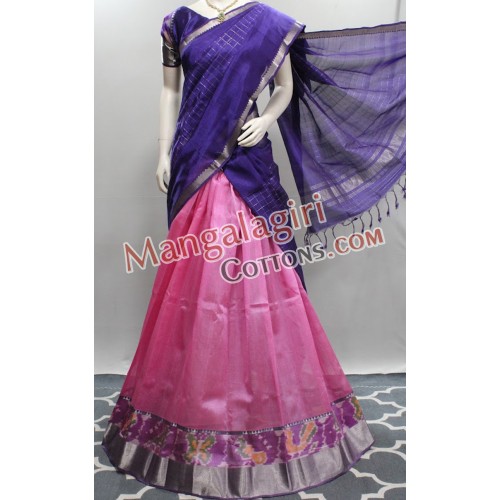 Mangalagiri Pure Handloom Semipattu Pochampally Langavoni Set. Set comes with unstitched blouse piece.