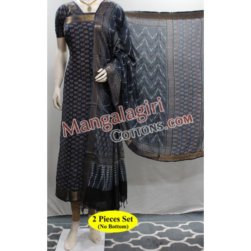 Mangalagiri Powerloom Ajrakh Printed Cotton Dress Material. Unstitched 2 Pieces Set.