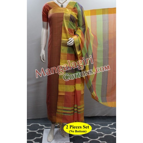 Mangalagiri Handloom Pure Cotton Dress Material with Gold Zari Nizam Border. Unstitched 2 Pieces Set.