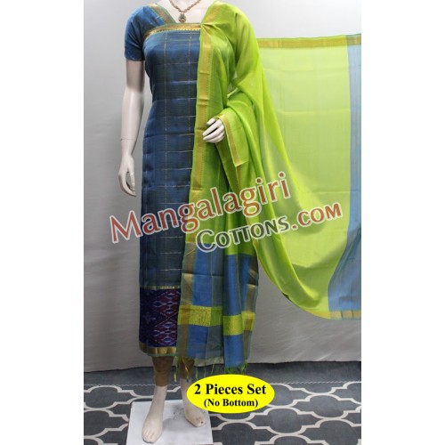 Mangalagiri Handloom Semi Pattu Ikkath Dress Material with Gold Zari Border. Unstitched 2 Pieces Set.