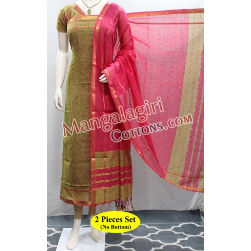 Mangalagiri Handloom Pure Cotton Dress Material with Gold Zari Border. Unstitched 2 Pieces Set.
