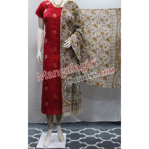 Mangalagiri Powerloom Raw silk Kalamkari Patiyala Dress. Unstitched 3 Pieces Set.