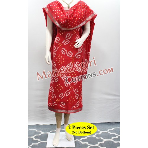 Mangalagiri Handloom Semi Pattu Bandhini Dress Material with Silver Zari Border. Unstitched 2 Pieces Set.