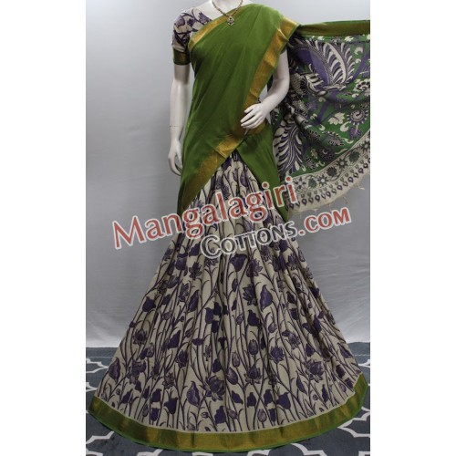 Mangalagiri Pure Handloom Semipattu Nizam Border Kalamkari Langavoni Set. Set comes with unstitched blouse piece.