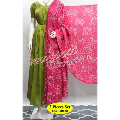 Mangalagiri Handloom Semi Pattu Mirror Work Top and Semi Pattu Digital Print Dupatta. Unstitched 2 Pieces Set.