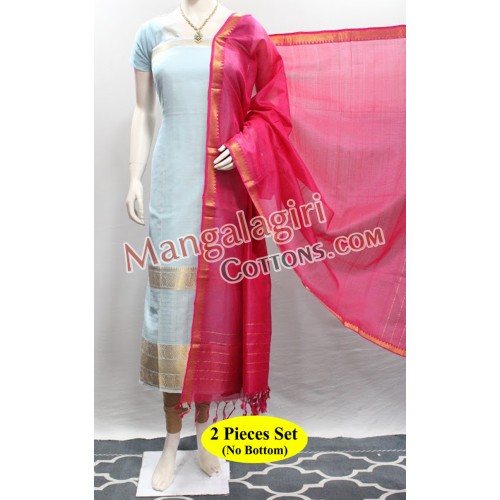 Mangalagiri Handloom Semi Pattu Top Gold Zari Kanchi Gap Border and Semi Pattu Dupatta. Unstitched 2 Pieces Set.
