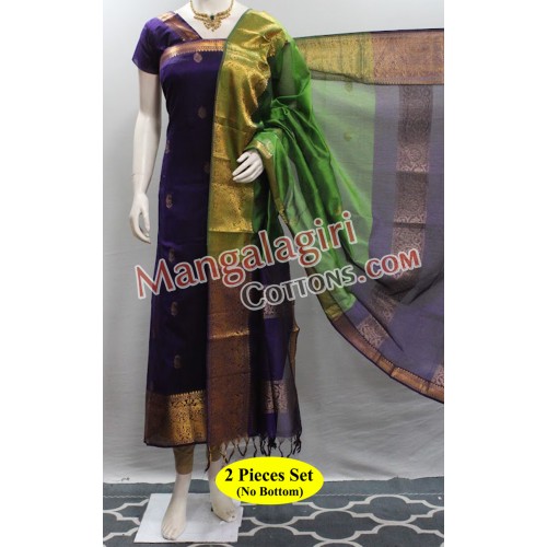 Mangalagiri Handloom Semi Pattu Butta Dress Material with Gold Zari Border. Unstitched 2 Pieces Set.