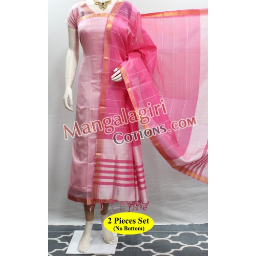 Mangalagiri Handloom Semi Pattu Dress Material with Gold Zari Border. Unstitched 2 Pieces Set.