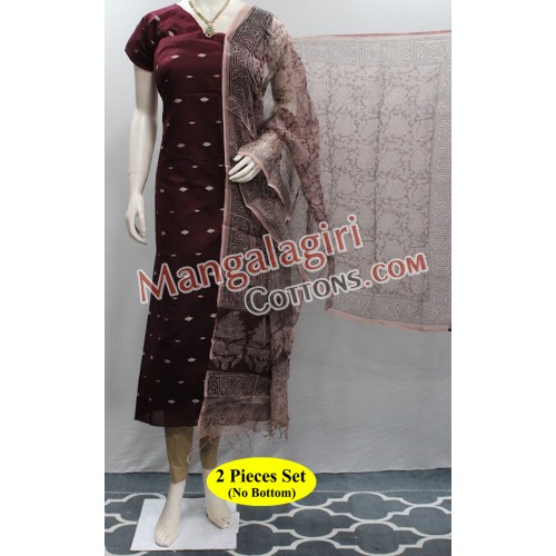 Mangalagiri Powerloom Rawsilk Top With Kota Kalamkari Duppata. Unstitched 2 Pieces Set.