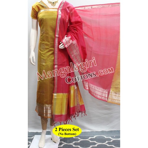 Mangalagiri Handloom Semi Pattu Dress Material with Silver Zari Kanchi Border. Unstitched 2 Pieces Set.