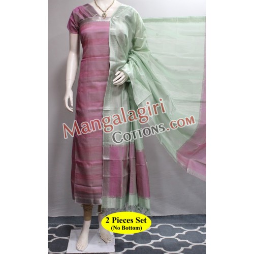 Mangalagiri Handloom Semi Pattu Lines Butta Dress Material with Silver Zari Border. Unstitched 2 Pieces Set.