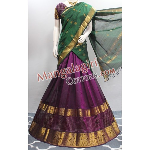 Mangalagiri Pure Handloom Semipattu Langavoni Set. Set comes with unstitched blouse piece.