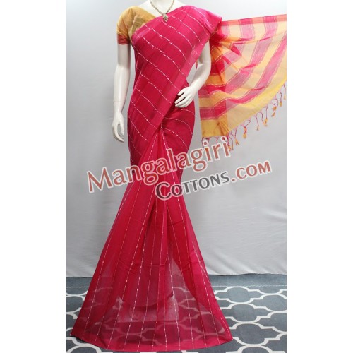 Mangalagiri Handloom Pure Cotton Jute Line Saree. Saree comes with Unstitched Blouse Piece.