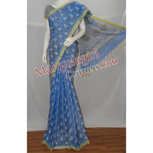 Printed Mangalagiri SemiPattu Saree (Cotton+SemiPattu Mix) with Cotton Border. Saree comes with unstiched blouse piece. Weaving pattern:Semi thick weaving. Saree Length:6.2 to 6.4 meters (Which include blouse piece)