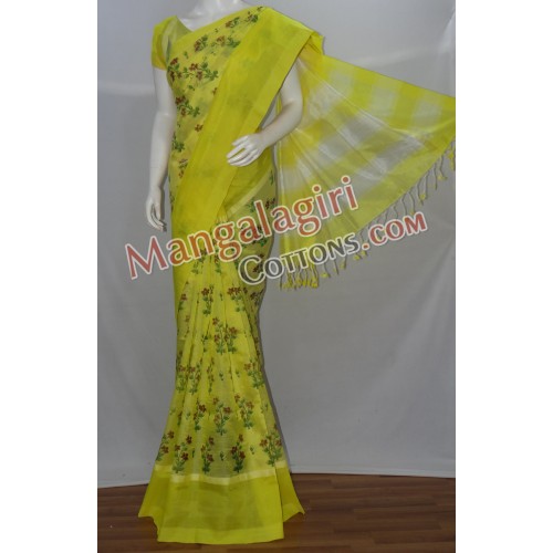 Printed Mangalagiri SemiPattu Saree (Cotton+SemiPattu Mix) with Cotton Border. Saree comes with unstiched blouse piece. Weaving pattern:Semi thick weaving. Saree Length:6.2 to 6.4 meters(Which include blouse piece)