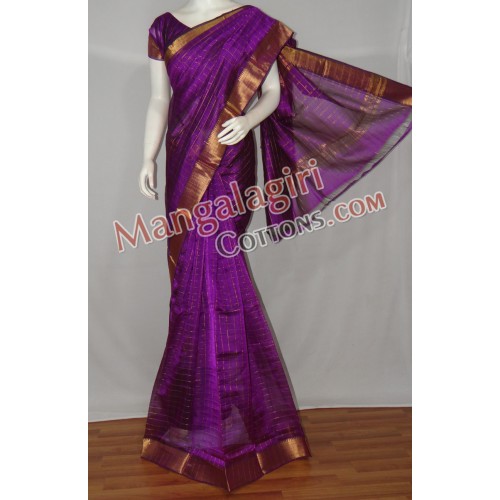 Mangalagiri Pattu Saree (Cotton+Pattu Mix) with Zari Border. Saree comes with unstiched blouse piece. Weaving pattern:Semi thick weaving. Saree Length:6.2 to 6.4 meters(Which include blouse piece)