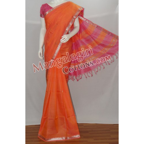 Mangalagiri SemiPattu Saree (Cotton+SemiPattu Mix) with Zari Border. Saree comes with unstiched blouse piece. Weaving pattern:Thick weaving. Saree Length:6.2 to 6.4 meters(Which include blouse piece)