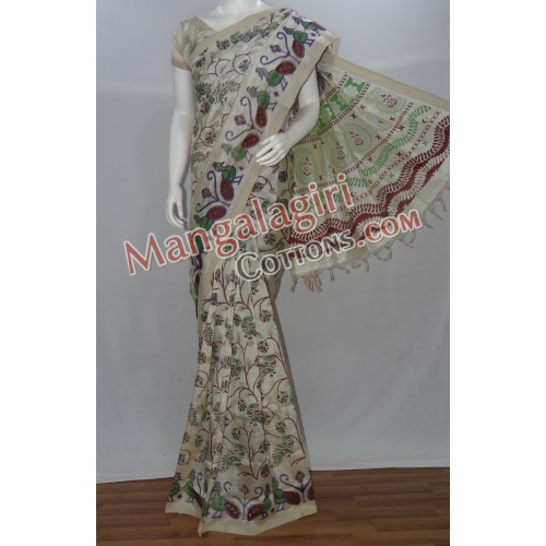 Printed Mangalagiri SemiPattu Saree (Cotton+SemiPattu Mix) with Plain Border. Saree comes with unstiched blouse piece. Weaving pattern:Semi thick weaving. Saree Length:6.2 to 6.4 meters(Which include blouse piece)