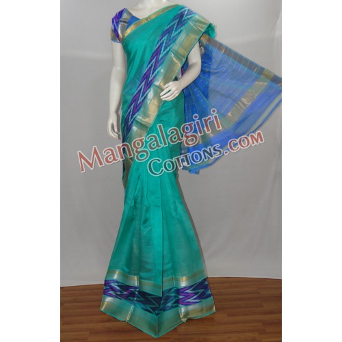 Mangalagiri Pattu Saree (Cotton+Pattu Mix) with Zari Border. Saree comes with unstiched blouse piece. Weaving pattern:Semi thick weaving. Saree Length:6.2 to 6.4 meters(Which include blouse piece)