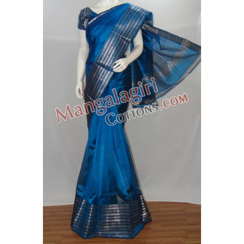 Mangalagiri Pattu Saree (Cotton+Pattu Mix) with Zari Border. Saree comes with unstiched blouse piece. Weaving pattern:Semi thick weaving. Saree Length:6.2 to 6.4 meters(Which include blouse piece)
