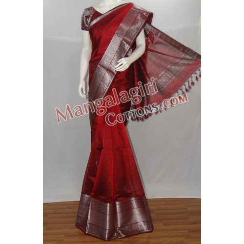 Mangalagiri Pattu Saree (Cotton+Pattu Mix) with Zari Border. Saree comes with unstiched blouse piece. Weaving pattern:Semi thick weaving. Saree Length:6.2 to 6.4 meters(Which include blouse piece)