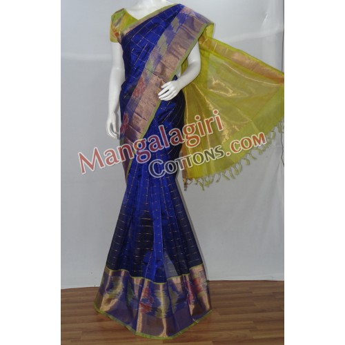 Mangalagiri Pattu Saree (Cotton+Pattu Mix) with Zari Border. Saree comes with unstiched blouse piece. Weaving pattern:Thick weaving. Saree Length:6.2 to 6.4 meters(Which include blouse piece)