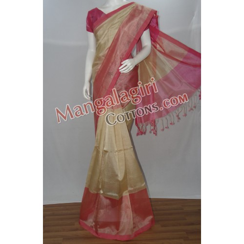 Mangalagiri SemiPattu Saree (Cotton+SemiPattu Mix) with Plain Border. Saree comes with unstiched blouse piece. Weaving pattern:Semi thick weaving. Saree Length:6.2 to 6.4 meters(Which include blouse piece)