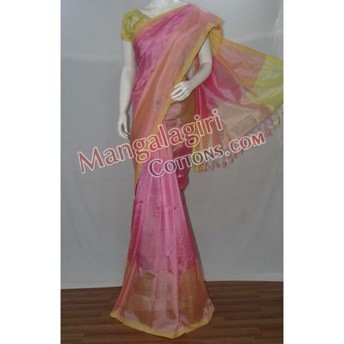 Mangalagiri SemiPattu Saree (Cotton+SemiPattu Mix) with Plain Border. Saree comes with unstiched blouse piece. Weaving pattern:Semi thick weaving. Saree Length:6.2 to 6.4 meters(Which include blouse piece)