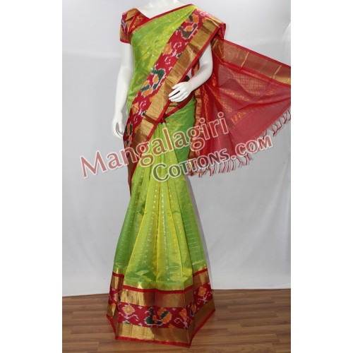Mangalagiri Pattu Saree (Cotton+Pattu Mix) with Zari Border. Saree comes with unstiched blouse piece. Weaving pattern:Thick weaving. Saree Length:6.2 to 6.4 meters(Which include blouse piece)