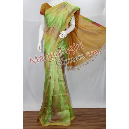 Mangalagiri SemiPattu Saree (Cotton+SemiPattu Mix) with Plain Border. Saree comes with unstiched blouse piece. Weaving pattern:Semi thick weaving. Saree Length:6.2 to 6.4 meters(Which include blouse piece)