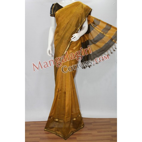 Mangalagiri SemiPattu Saree (Cotton+SemiPattu Mix) with Zari Border. Saree comes with unstiched blouse piece. Weaving pattern: Semi thick weaving. Saree Length:6.2 to 6.4 meters (Which include blouse piece)