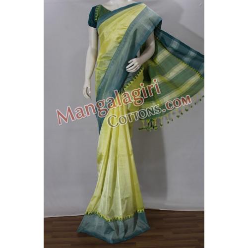 Mangalagiri SemiPattu Saree (Cotton+SemiPattu Mix) with Cotton Border. Saree comes with unstiched blouse piece. Weaving pattern:Semi thick weaving. Saree Length:6.2 to 6.4 meters(Which include blouse piece)