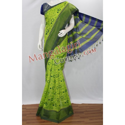 Printed Mangalagiri SemiPattu Saree (Cotton+SemiPattu Mix) with Cotton Border. Saree comes with unstiched blouse piece. Weaving pattern:Semi thick weaving. Saree Length:6.2 to 6.4 meters(Which include blouse piece)