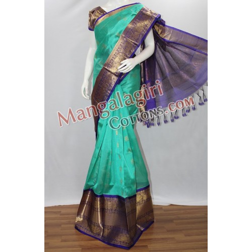 Mangalagiri Pattu Saree (Cotton+Pattu Mix) with Zari Border. Saree comes with unstiched blouse piece. Weaving pattern:Thick weaving. Saree Length:6.2 to 6.4 meters(Which include blouse piece)