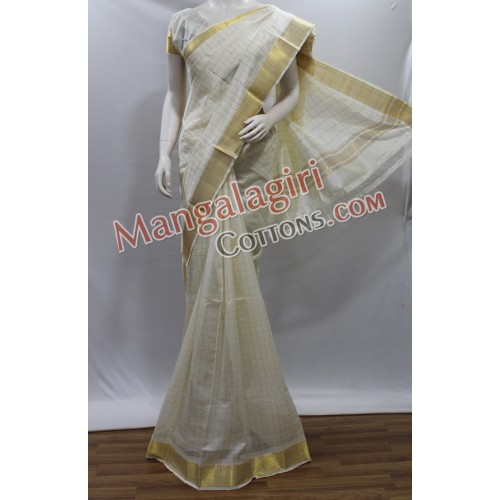 Mangalagiri Pattu Saree (Cotton+Pattu Mix) with Zari Border. Saree comes with unstiched blouse piece. Weaving pattern:Semi thick weaving. Saree Length:6.2 to 6.4 meters(Which include blouse piece)