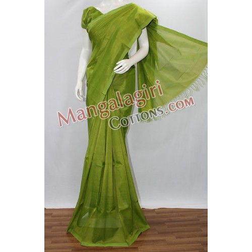 Mangalagiri SemiPattu Saree (Cotton+SemiPattu Mix) with Plain Border. Saree comes with unstiched blouse piece. Weaving pattern:Semi thick weaving. Saree Length:6.2 to 6.4 meters(Which include blouse piece)
