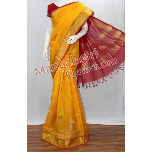 Mangalagiri Pure Pattu Saree (Cotton+Pattu Mix) with Zari Border. Saree comes with unstiched blouse piece. Weaving pattern:Thick weaving. Saree Length:6.2 to 6.4 meters(Which include blouse piece)