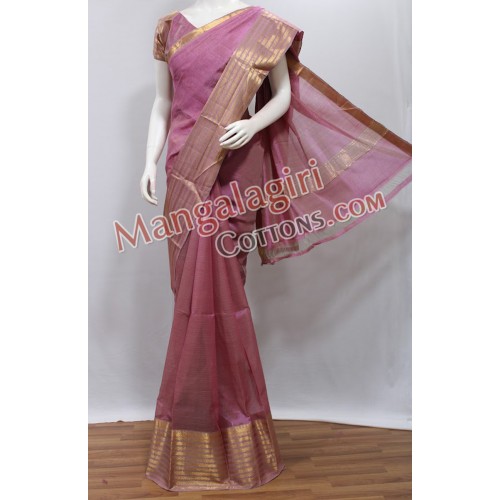 Mangalagiri SemiPattu Saree (Cotton+SemiPattu Mix) with Zari Border. Saree comes with unstiched blouse piece. Weaving pattern:Semi thick weaving. Saree Length:6.2 to 6.4 meters(Which include blouse piece)
