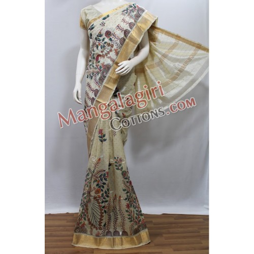Printed Mangalagiri SemiPattu Saree (Cotton+SemiPattu Mix) with Zari Border. Saree comes with unstiched blouse piece. Weaving pattern:Semi thick weaving. Saree Length:6.2 to 6.4 meters(Which include blouse piece)
