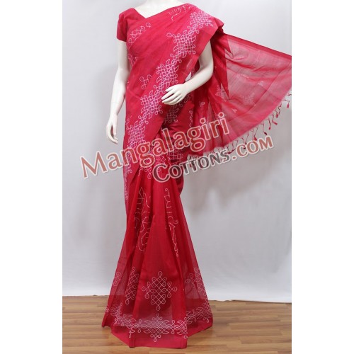 Printed Mangalagiri SemiPattu Saree (Cotton+SemiPattu Mix) with Plain Border. Saree comes with unstiched blouse piece. Weaving pattern:Semi thick weaving. Saree Length:6.2 to 6.4 meters(Which include blouse piece)
