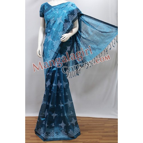 Printed Mangalagiri SemiPattu Saree (Cotton+SemiPattu Mix) with Plain Border. Saree comes with unstiched blouse piece. Weaving pattern:Semi thick weaving. Saree Length:6.2 to 6.4 meters(Which include blouse piece)