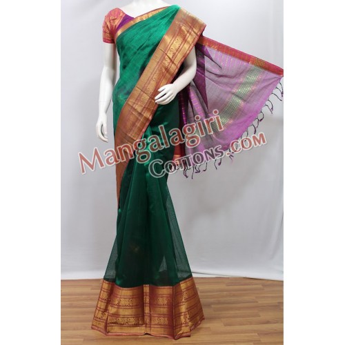 Mangalagiri Pure Pattu Saree (Cotton+Pattu Mix) with Zari Border. Saree comes with unstiched blouse piece. Weaving pattern:Semi thick weaving. Saree Length:6.2 to 6.4 meters(Which include blouse piece)