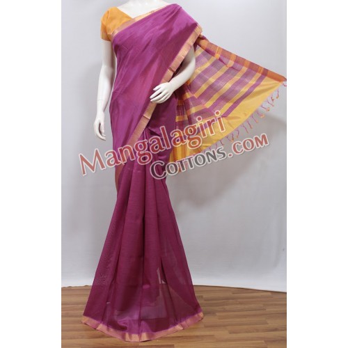 Mangalagiri SemiPattu Saree (Cotton+SemiPattu Mix) with Zari Border. Saree comes with unstiched blouse piece. Weaving pattern:Semi thick weaving. Saree Length:6.2 to 6.4 meters(Which include blouse piece)