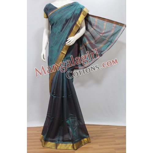 Mangalagiri Handloom Semi Pattu Saree (Cotton Warp +Semi Pattu Weaving) with Gold Zari Border. Saree comes with Unstitched Blouse Piece.